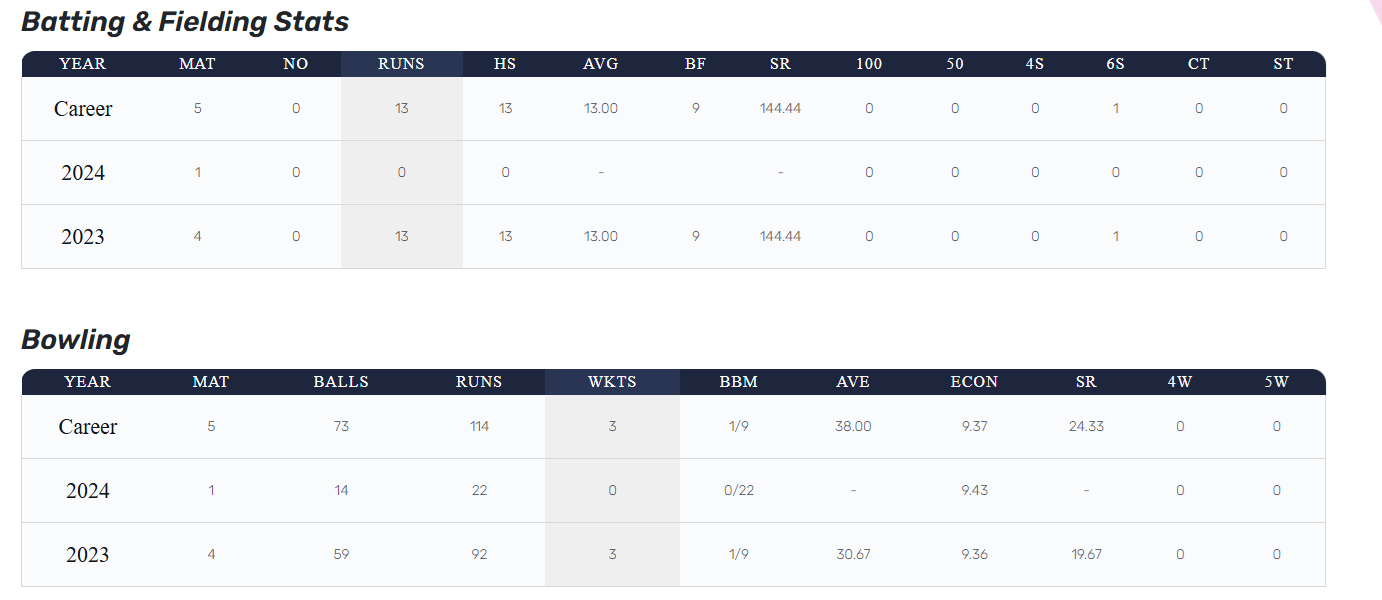 In the 2024 season, Arjun played only one match and did not have significant contributions. Despite limited opportunities, the Mumbai Indians retained him for the 2025 season, reflecting the franchise’s belief in his potential.